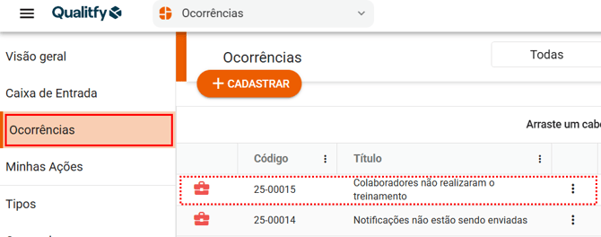 Para alterar uma etapa, selecione a ocorrência desejada e clique sobre ela para acessar seus detalhes.