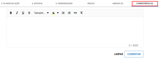 Assim, todos os comentários feitos na ocorrência serão exibidos neste campo, independentemente da etapa em que ela se encontra.