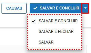 Salvar e fechar: Salva os dados e volta pra listagem de ocorrências.