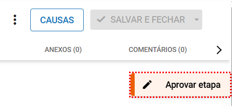 Ao clicar em "Aprovar etapa", será aberta uma janela para você realizar a aprovação ou reprovação.