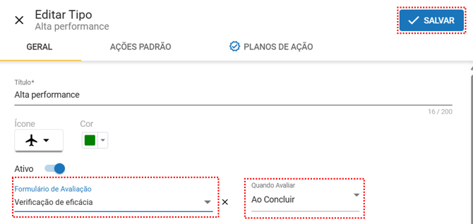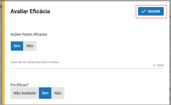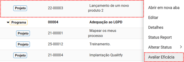 e selecionar a opção "Avaliar Eficácia"