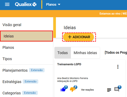 Pronto! Sua ideia está salva no sistema e aparecerá na lista de ideias.