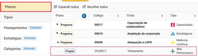 Após clicar em "Converte em Projeto" a ideia já estará na listagem de projetos.