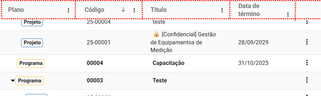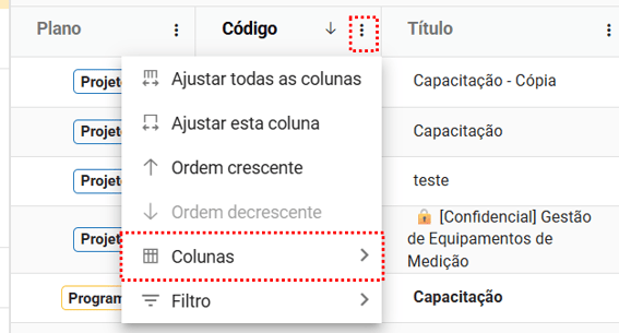A gestão eficiente de projetos exige uma visão clara e personalizada das informações mais relevantes para cada usuário. Pensando nisso, o sistema permite que você personalize a visualização da aba "Planos", escolhendo exatamente quais colunas deseja exibir de acordo com suas necessidades.