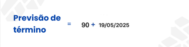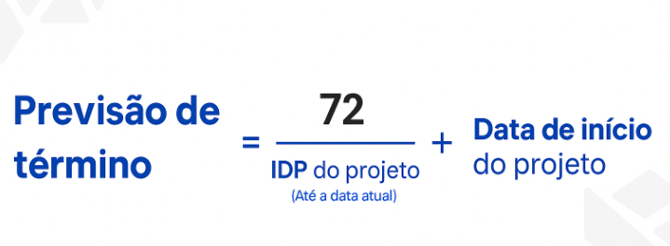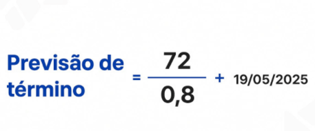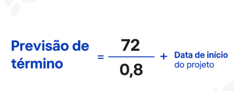 O cálculo da "Previsão de término" do projeto é definido pela fórmula: