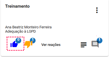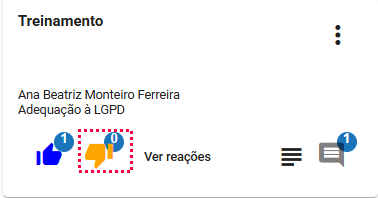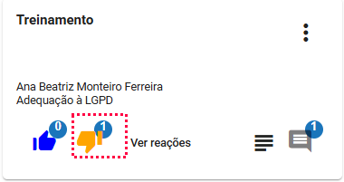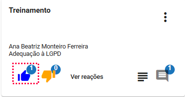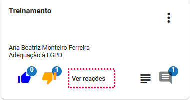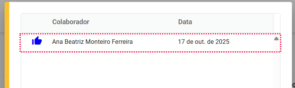 - Após clicar em "Ver reações" abrirá a listagem com todas as reações, o nome do colaborador que reagiu e a data.