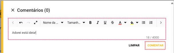 - Para comentar, vá na ideia que desejar comentar e clique no ícone