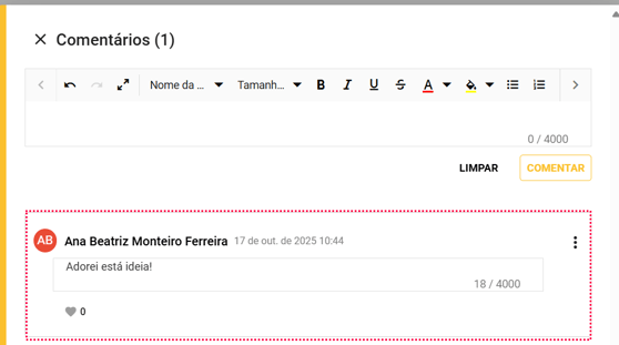 - Abrirá a tela de comentários e nela podemos escrever o comentário na caixa de texto