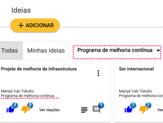 - Minhas ideias: mostra apenas as ideias criadas pelo usuário.