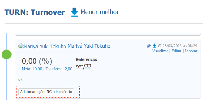 Após finalizar a análise, clique na opção "Adicionar ação, NC e incidência".