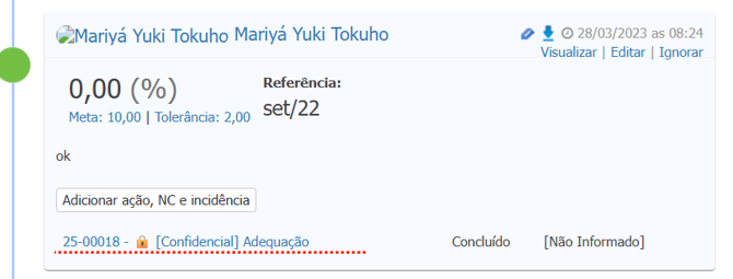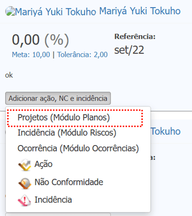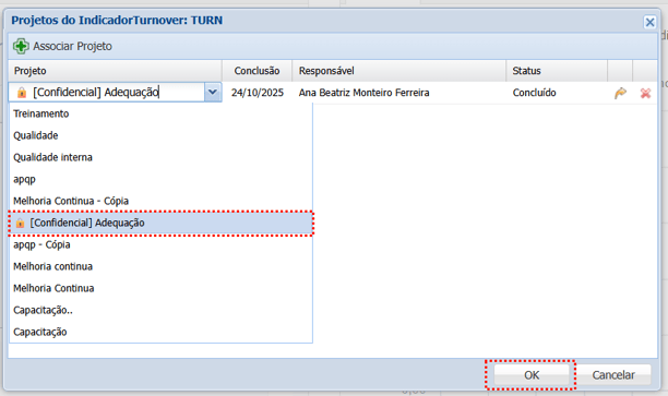 Após realizar o vínculo, a análise do seu indicador mostrará de forma clara o projeto associado a ela.
