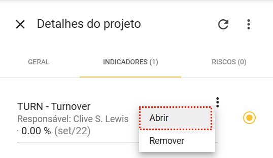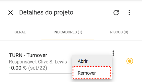 - Você também pode remover esse indicador do projeto: basta clicar em “Remover”.