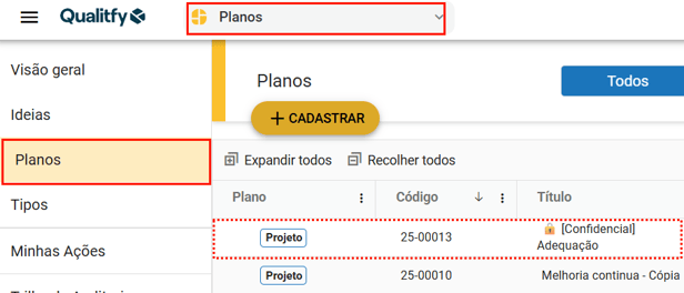 - Acesse o projeto vinculado no módulo Planos na aba "Planos".