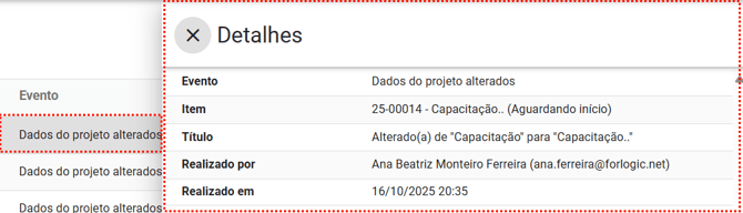 - Realizado em: Data e horário que foi realizado essa alteração.