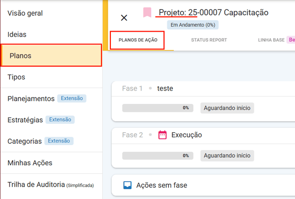 Para acompanhar o progresso das ações do seu plano de ação, acesse o menu de contexto