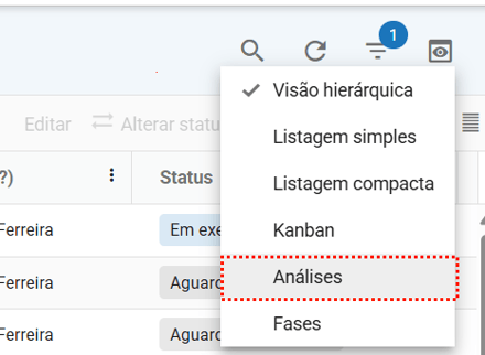 , localizado no canto superior direito, selecione a opção "Análises" para visualizar as informações.