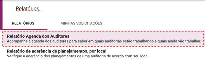 Para visualizar o relatório "Agenda dos Auditores", acesse o módulo Auditorias e clique na aba Relatórios.