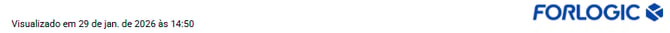 Ao final de cada página do relatório teremos informações para a rastreabilidade. No canto inferior direito teremos a logo da Forlogic. Essas informações evidenciam que o relatório foi gerado por um sistema computadorizado.