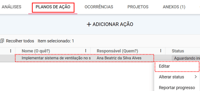 Clique duas vezes na ação à qual deseja adicionar o anexo ou clique com o botão esquerdo do mouse e selecione Editar.