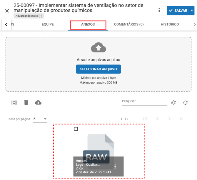 Após selecionar o arquivo, ele será adicionado como anexo. Para concluir, clique em Salvar.