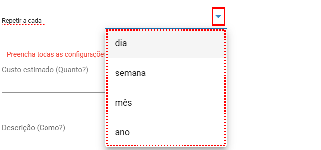 - Semanal: Informe o número de semanas entre as ações, o sistema criará ações quinzenais nesses dias.
