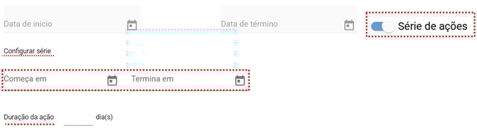 - Na tela de cadastro da ação, localize a opção Série de Ações e habilite-a.