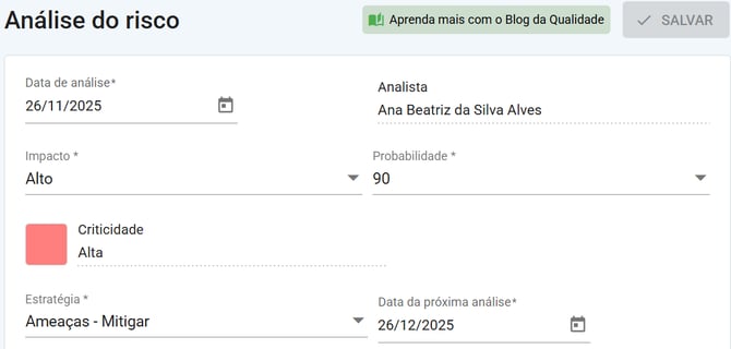 Após concluir a análise de risco, é possível cadastrar ações para criar um plano de tratativa alinhado à estratégia definida pela empresa. Essas ações ajudam a reduzir riscos, prevenir problemas e promover melhorias contínuas. Veja como realizar esse cadastro no sistema.
