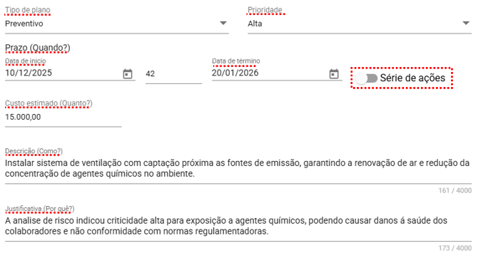 Você pode ativar a opção Série de Ações para configurar ações recorrentes. Essa ferramenta é ideal para tarefas que precisam ser executadas repetidamente em períodos determinados.