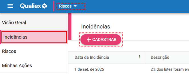 O cadastro de incidências é uma etapa essencial na gestão de riscos, pois permite registrar eventos que podem impactar os processos da organização. No módulo Riscos do Qualiex, essa funcionalidade foi desenvolvida para ser prática e acessível, garantindo que qualquer colaborador possa registrar uma ocorrência mesmo sem saber a qual risco ela está vinculada.