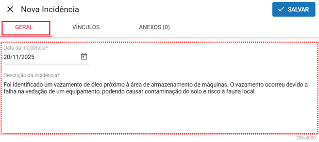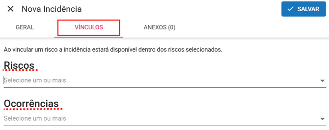 • Vínculo: Caso queira, vincule a incidência a um risco ou ocorrência.