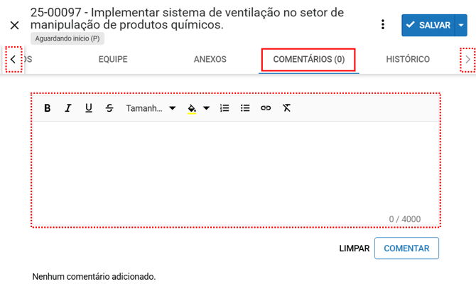 Utilizando as setas de navegação, vá até a aba Comentários, Na parte inferior da tela, você encontrará um campo de texto para escrever sua mensagem.