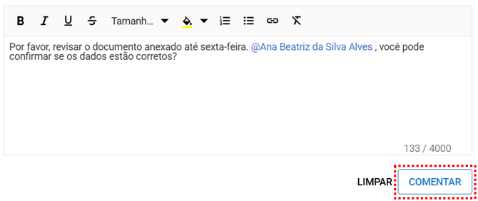 Após de escrever o comentário, clique em "Comentar".