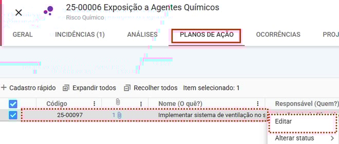 Em seguida, vá até a aba Planos de Ação, localize a ação desejada, clique com o boatão direito do mouse ou acesso pelo menu de contexto
