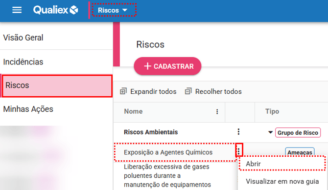 Para editar uma análise, localize o risco desejado e clique sobre ele com o botão direito do mouse, ou acesse o menu de contexto