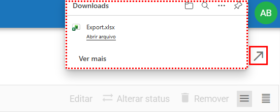Para exportar, ao acessar a aba Minhas Ações, clique no ícone