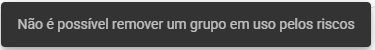 Caso o grupo que você deseja remover tenha riscos vinculados a ele, ao clicar em “Remover grupo de risco” será exibida uma mensagem.