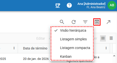 A aba Minhas Ações é uma ferramenta essencial para acompanhar todas as atividades atribuídas a você dentro do módulo Risco. Além de permitir a visualização rápida das ações, ela oferece recursos avançados para filtrar, organizar e alterar a forma de exibição, garantindo mais agilidade e controle no gerenciamento das tarefas.