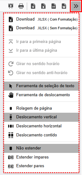 - Outras opções, como exportar com ou sem formatação, mudar a orientação do relatório, entre outros, é só clicar no botão
