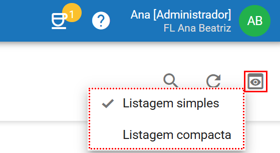 Caso sua unidade possua um grande volume de registros, utilize os modos de listagem Simples ou Avançada para facilitar a navegação. Para alternar entre os modos, basta clicar em