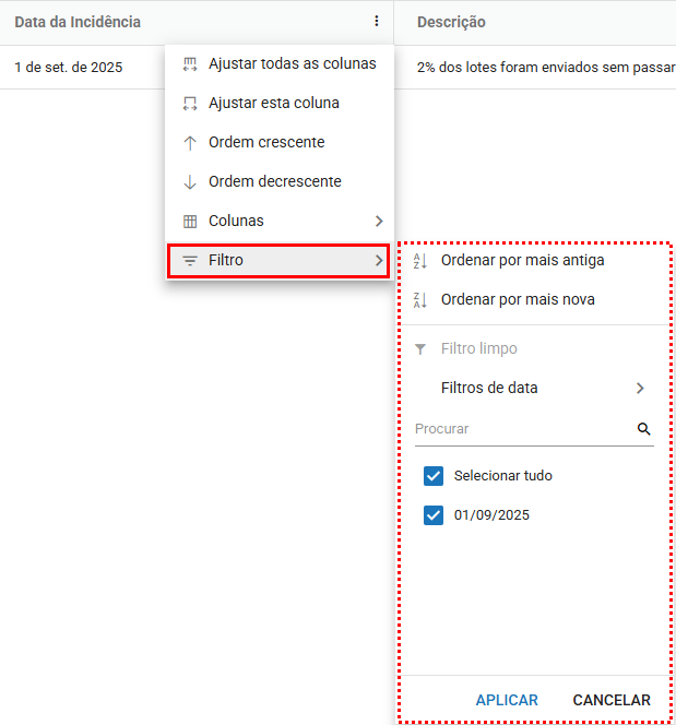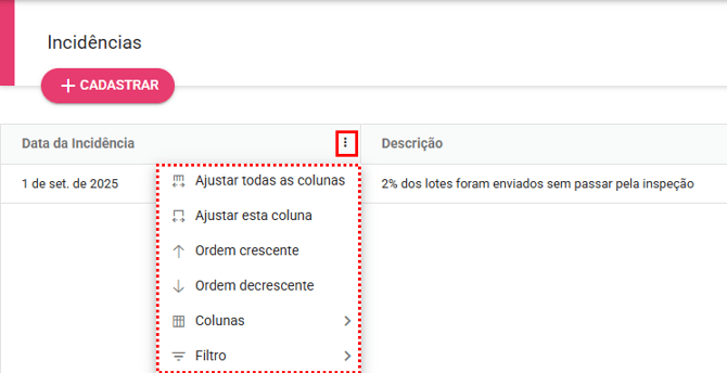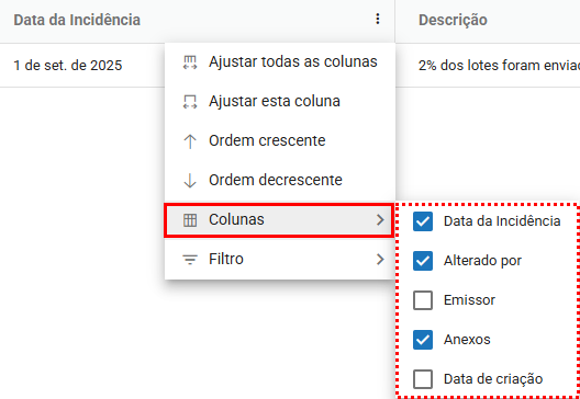 Para tornar a visualização das incidências mais organizada, o módulo oferece opções de ajuste diretamente no