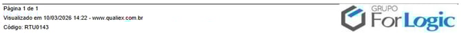 Ao final de cada página do relatório teremos informações para a rastreabilidade: quantidade de páginas, data e hora de visualização do relatório, e em qual site. No canto inferior direito teremos a logo da Forlogic. Essas informações evidenciam que o relatório foi gerado por um sistema computadorizado.