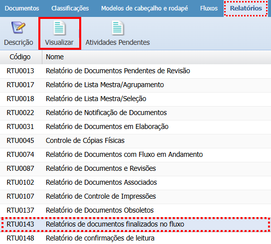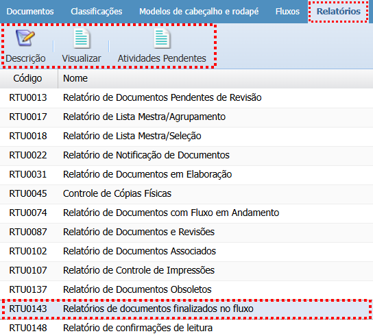 RTU0143 - Relatórios de documentos finalizados no fluxo