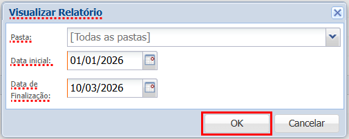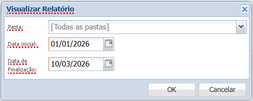 Pasta: selecione a pasta na qual deseja aplicar o relatório ou deixe em branco para considerar todas as pastas.