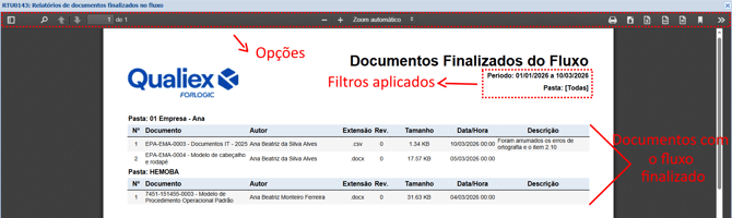 o relatório será gerado com os documentos de fluxo finalizado.