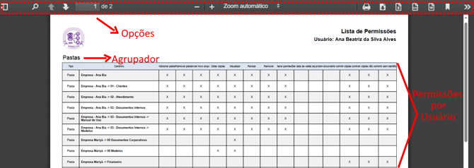 Para visualizar o relatório não é necessária nenhuma permissão específica, todo colaborador que tenha acesso ao módulo Docs consegue realizar essa visualização.