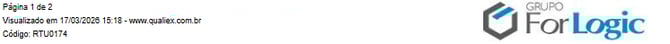 Ao final de cada página do relatório teremos informações para a rastreabilidade: quantidade de páginas, data e hora de visualização do relatório, e em qual site. No canto inferior direito teremos a logo da Forlogic. Essas informações evidenciam que o relatório foi gerado por um sistema computadorizado.