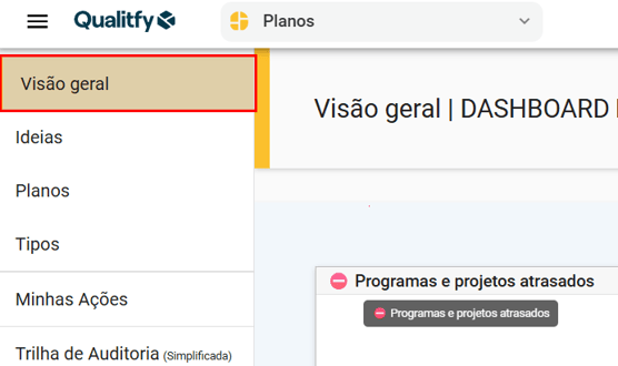 Ao acessar o módulo Planos, selecione a aba "Visão Geral".