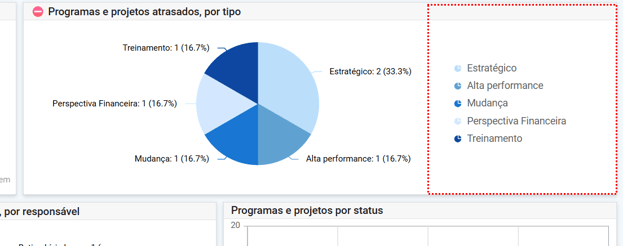 As legendas serão criadas com base nas opções cadastradas no módulo Planos e no contexto da dashboard, ficando disponíveis ao lado direito da tela.