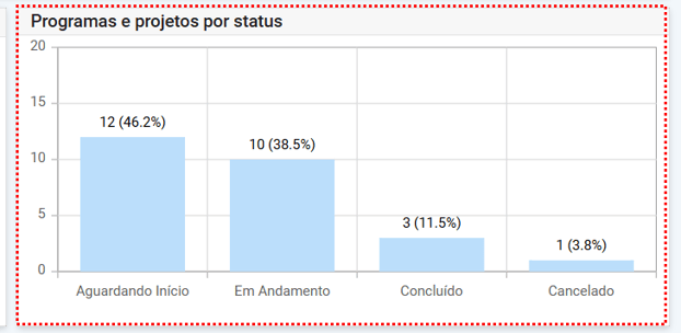Programas e projetos por status : Acompanhe os programas e projetos conforme seu status atual: Concluído, Em andamento, Aguardando início, Cancelado ou Pausado.