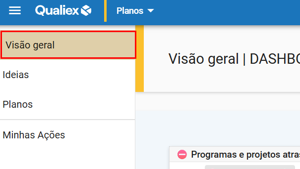 Ao acessar o módulo Planos, selecione a aba "Visão Geral".